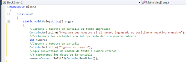 -Comenzaremos capturando el texto y mostrándolo en pantalla (El nombre del programa y la petición de un numero), Declararemos la variable que en este caso seria num, la capturamos en pantalla y la convertimos en numero entero.